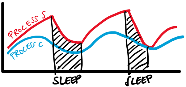 Both processes interact with each other. During the day, Process C keeps you awake, even when sleep pressure (S) rises. In the evening, Process C triggers the need for sleep, while Process S empties the “tank”. Problems such as jet lag arise when the internal clock (C) does not adjust quickly. Sleep deprivation occurs when the “tank” (S) is not emptied enough.
